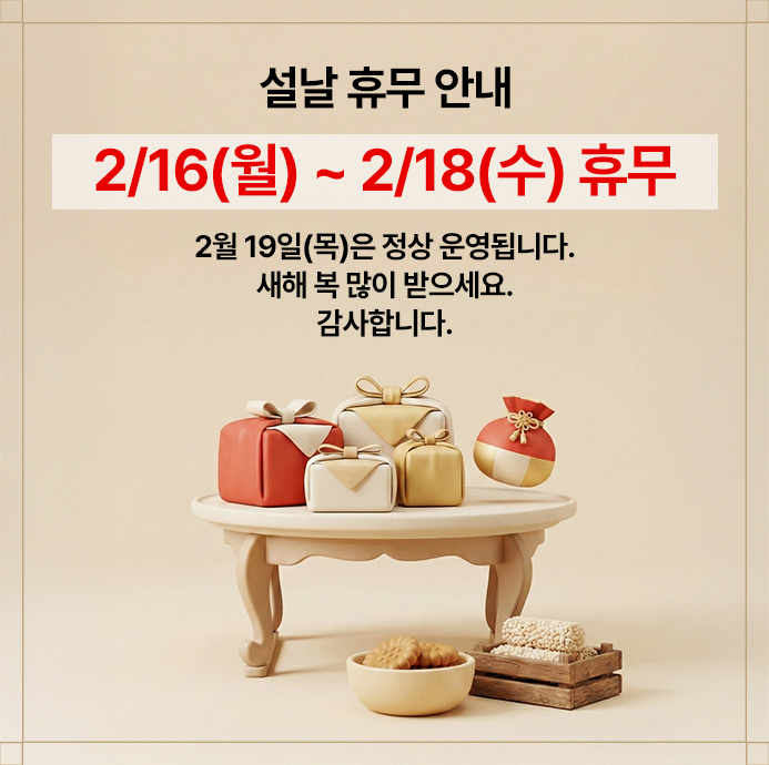 ㅇ휴무일 : 2026년 02월 16일(월) ~ 2026년 02월 18일(수)
